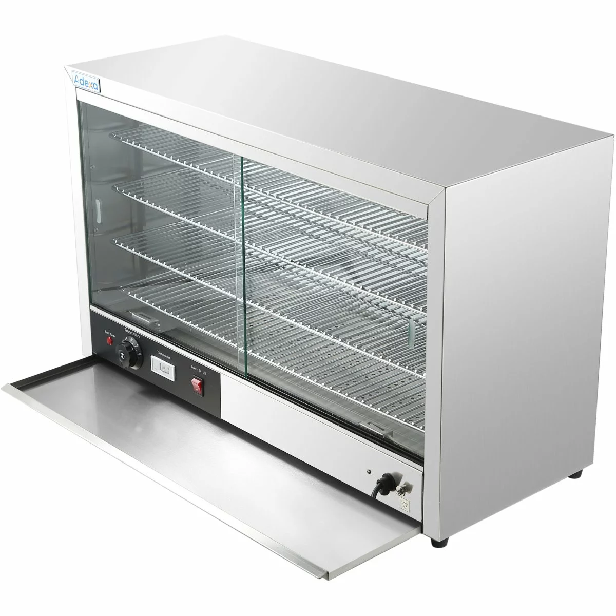 Attractively promote your heated pies, pasties and sausage rolls with this heated display case. The stainless steel and glass design gives your customers a 360° view of your best heated food selection, perfect for cafeterias, catering, concessions, convenience stores, pubs & bars, restaurants & cafés, supermarkets, delis and other professional catering establishments.