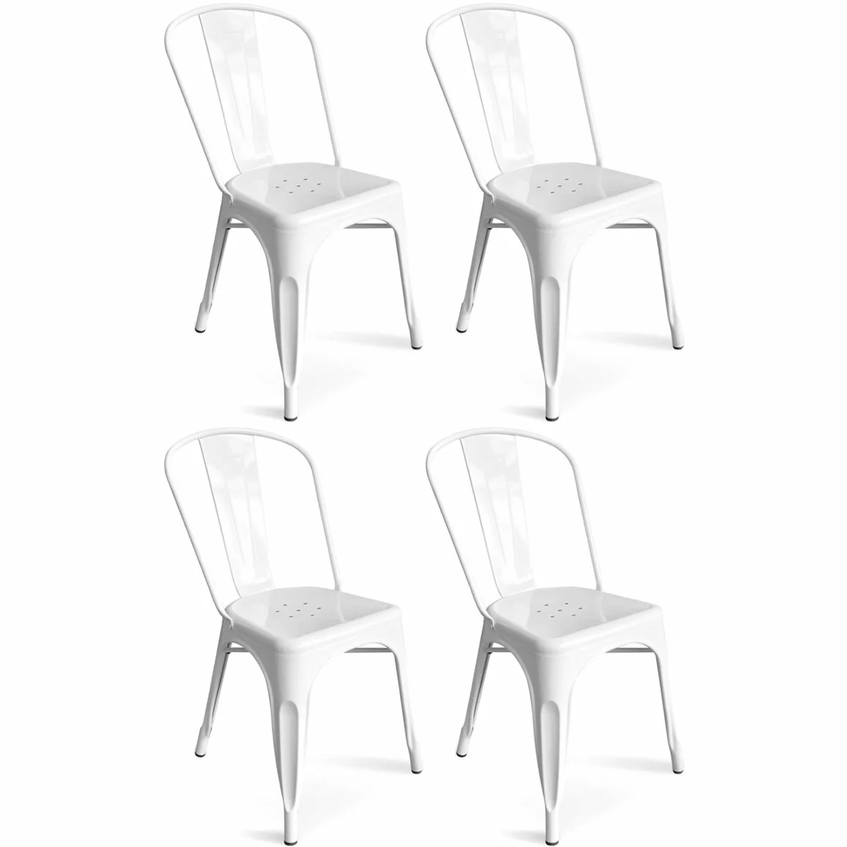 Take your modern restaurant, cafe, or bistro to the next level with this metal indoor industrial cafe chair with vertical slat back and drain hole seat. Made with a steel construction, it has received an e-coating to seal it against rust. This treatment was followed with a white powder coating to further enhance durability so you can rest assured that this cafe chair is sure to withstand years of use. The frame is reinforced with additional under-seat cross bracing to provide strength and stability without adding extra bulk or weight to this sleek design. It’s lightweight enough for easy movement and transportation so you can quickly reconfigure your dining space and easily clean up at the end of the night. It can even be stacked to maximize storage space if need!