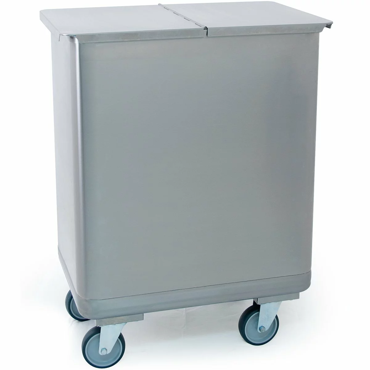 Professional stainless steel ingredient bin with 4 castors. The lids of this trolley comes with a split lid that opens in both ends. A very versatile bin trolley for any restaurant, hotel or bar that can easily be used for a multitude of other purposes.