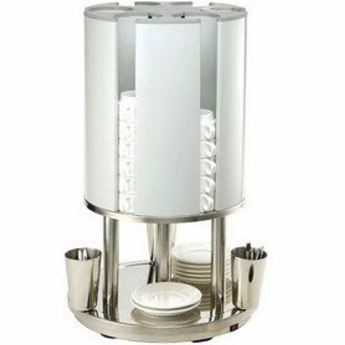 This professional catering appliance is used for supplying warmed cups and saucers utilizing a very small space. The cups are warmed up, as they are placed upside down in 6 warming stacks. The cup stackers keeps your cups warm, handy, clean and dust free.