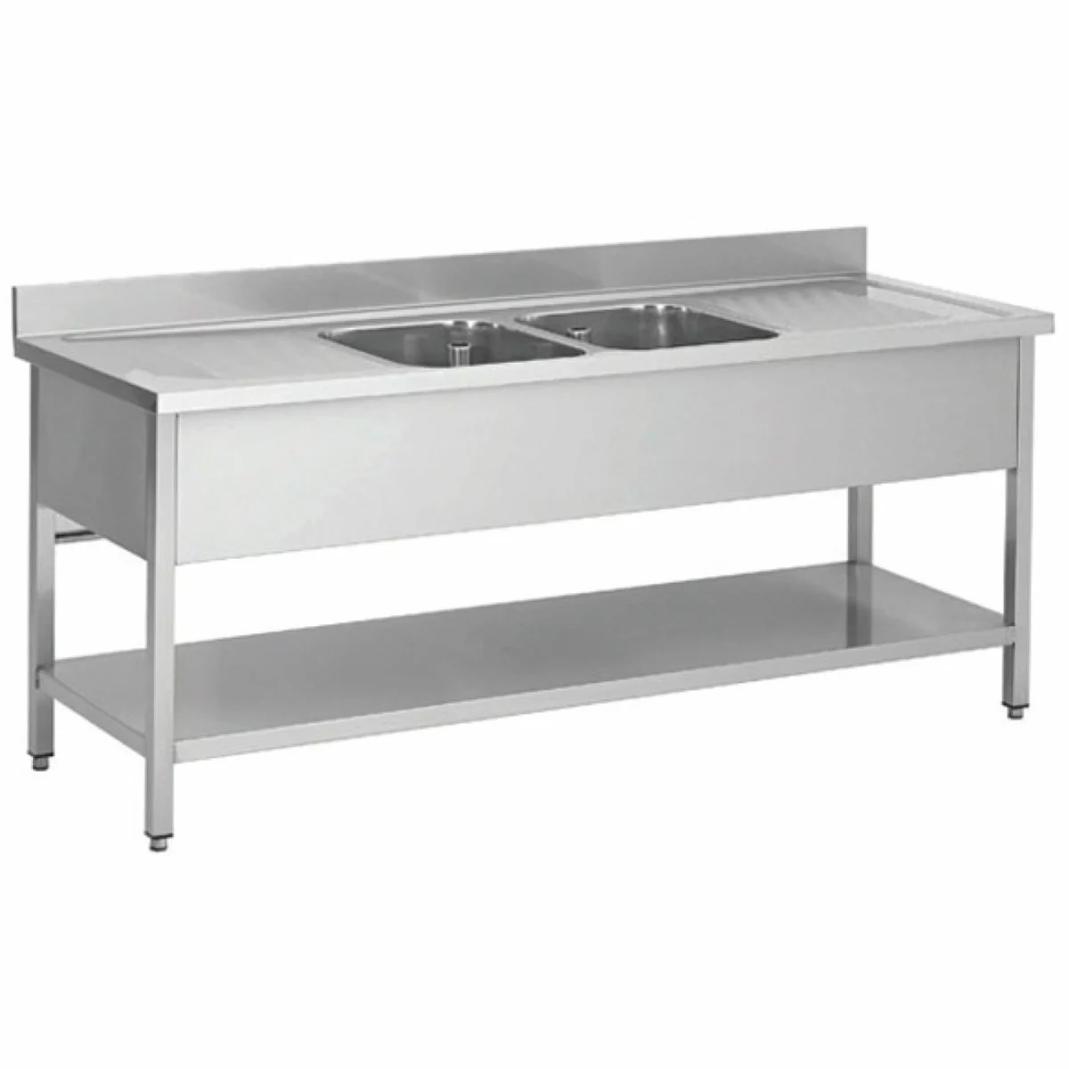 Commercial Sink Stainless Steel 2 Bowls Bottom Shelf Splashback 2000mm Depth 700mm | Adexa THSTR207BM2