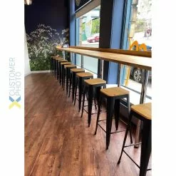 High Bar Stool With Wooden Seat Steel Black Indoors | Adexa WW61B