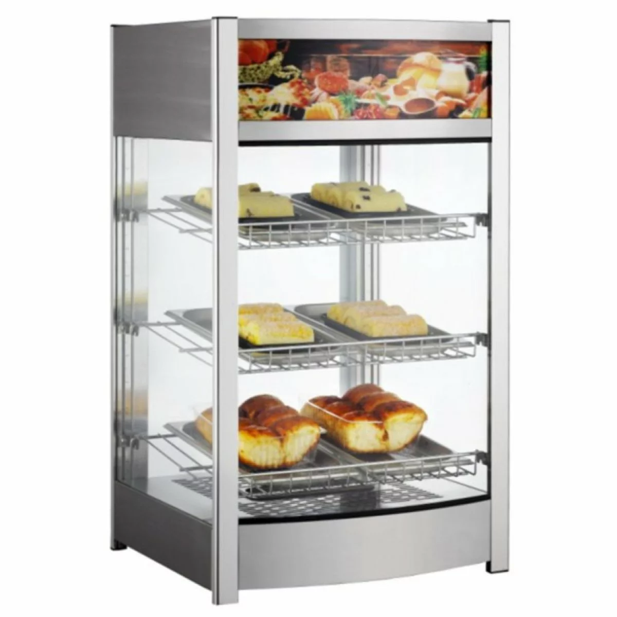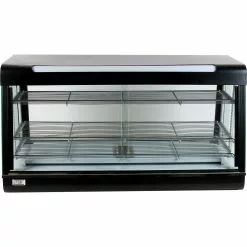 With a 97 litre capacity, this heated display cabinet features 4 glass side panels and top front light box for improved product visibility.