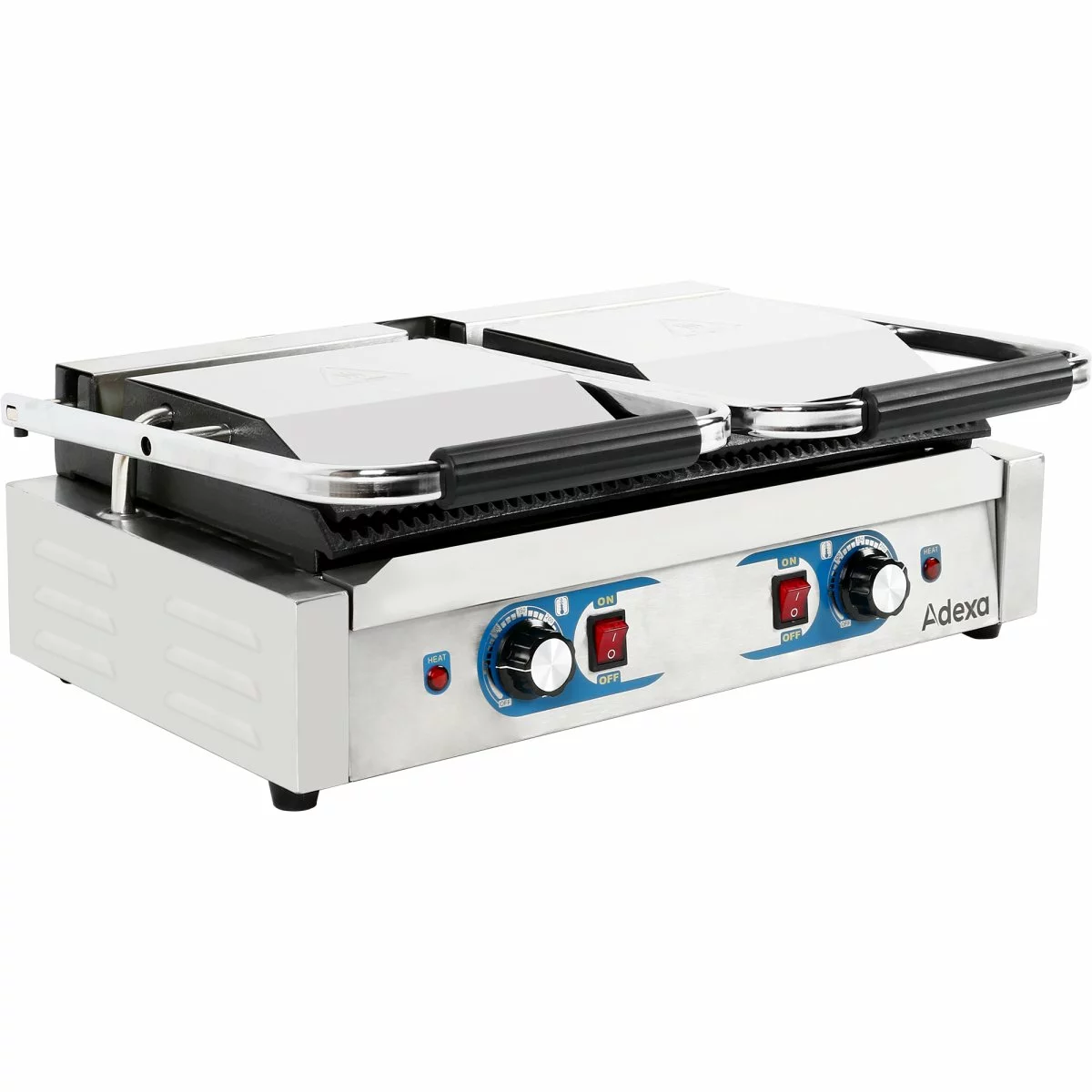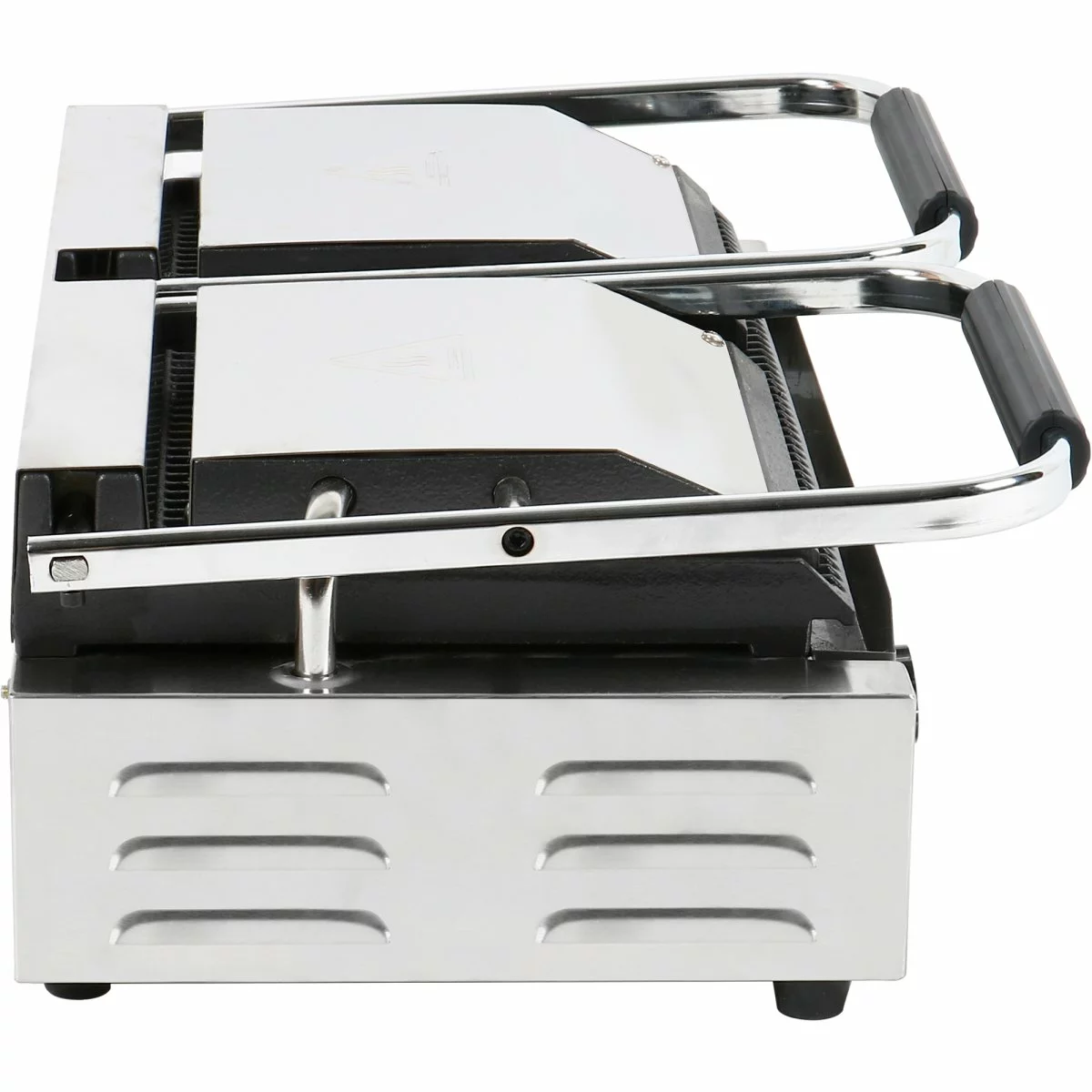 Full size commercial twin panini contact grill with a huge range of professional catering uses. The perfect contact grill for any professional restaurant, cafe, bar, sandwich shop or hotel.