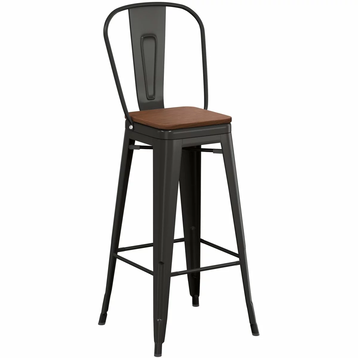This high bar stool with a sturdy metal steel structure, wooden seat, and high backrest for additional support for your customers. The simple and functional design of this bar stool makes it perfect for a classy and laid-back look. The solid metal steel frame and seat fixings are manufactured for durability and finished with anti-rust powder coating. Its solid seat is stylish and the heavy-duty footrests make it easy to use. To prevent scratches on the floor and ensure stability, this bar stool has rubber on the bottom of each leg. It comes fully assembled and it is suitable for both home and commercial use.