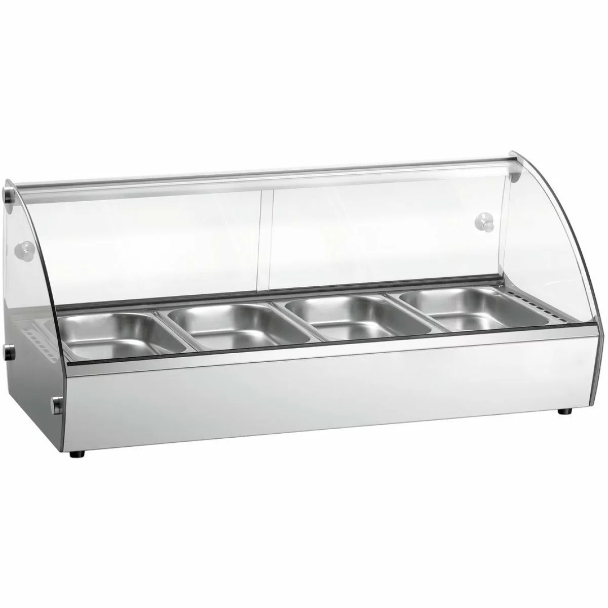 Commercial warm display merchandiser with a very stylish stainless steel design. Perfect for cafeterias, catering, concessions, convenience stores, pubs & bars, restaurants & cafés, supermarkets & delis.