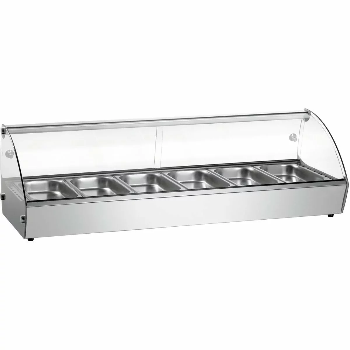 Commercial warm display merchandiser with a very stylish stainless steel design. Perfect for cafeterias, catering, concessions, convenience stores, pubs & bars, restaurants & cafés, supermarkets & delis.