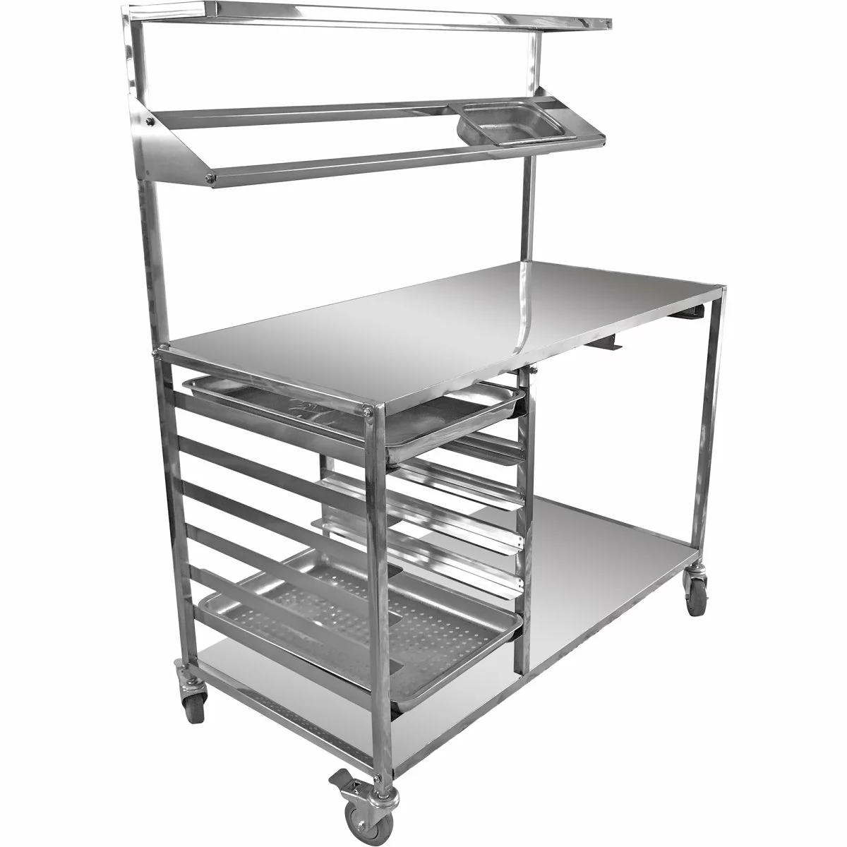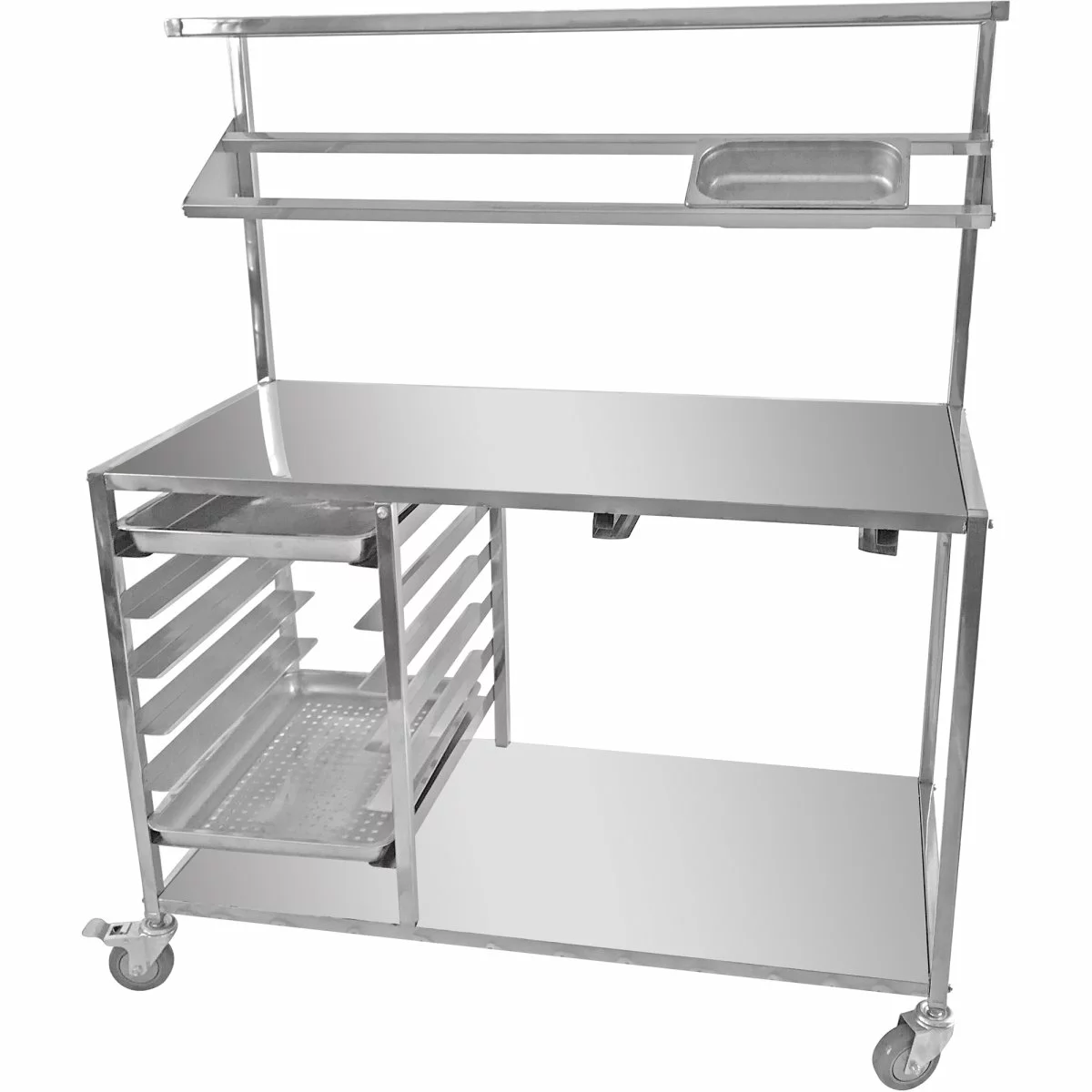 A solidly constructed work table providinga working height of 900mm.The unit comescomplete with a bank of runners, garnish rail & overshelf. The table also comes complete with castors. Containers forthe garnish rack ordered separately.