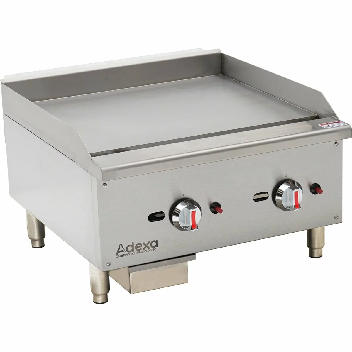 Essential for any busy commercial kitchen, this countertop griddle is powerful, reliable and user-friendly. With the polished steel plate, the griddle offers great heat distribution and retention, ensuring that food such as bacon, eggs, onions and burgers are cooked with ease. The adjustable thermostat controls allow precise temperature control and the removable waste drawers helps to prevent time wasted removing food waste from the place surface.