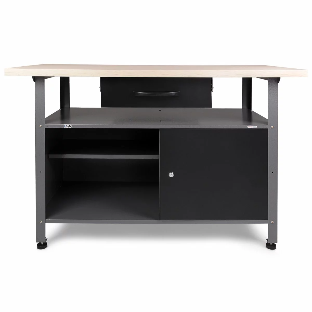 This heavy duty workbench has a sleek grey and black design, finished with a 30mm wooden desktop. Providing ample storage space, this workbench has 2 layers and 2 lockers.
