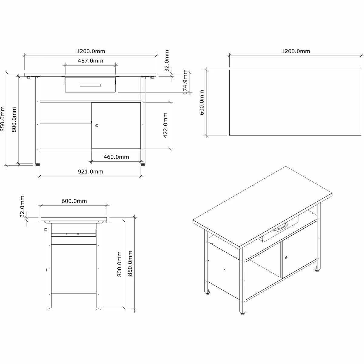 - Dimensions: 1200x600x850mm