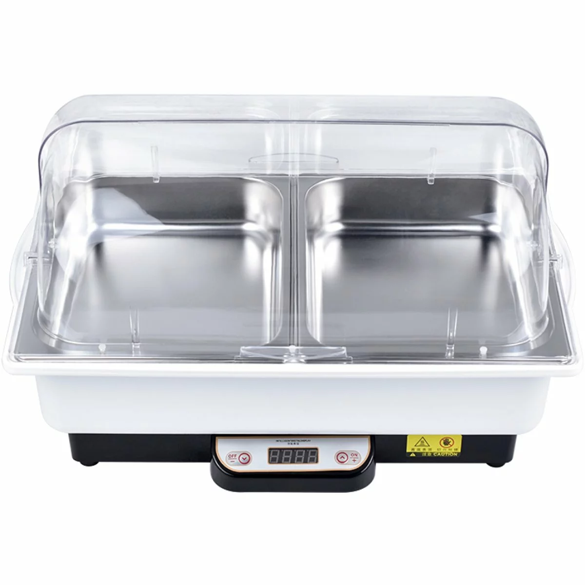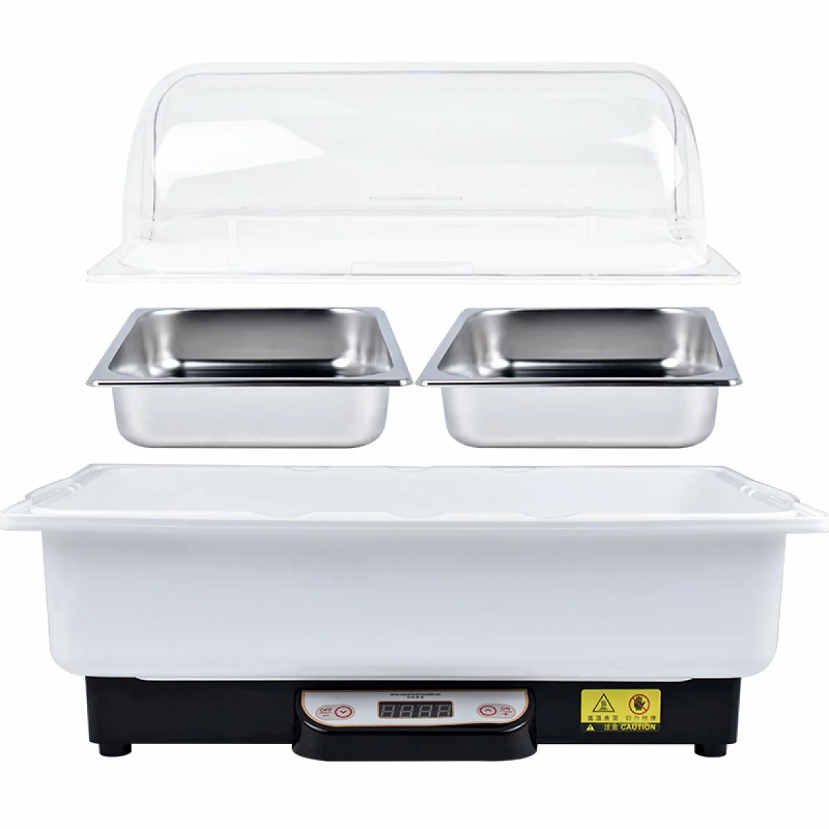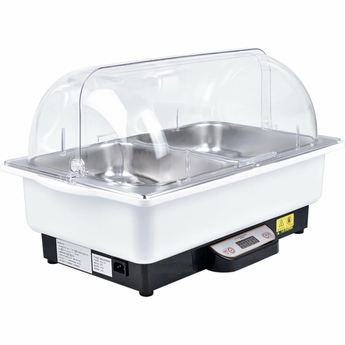 Make sure your catering food stays warmer for longer with this commercial electric chafing dish. Perfect for keeping your food at serving temperature in buffets, professional roll top chafing dishes offer portable and convenient heating. With a wet heat operation, it comes supplied with stainless steel water and food pans. Made from easy-to-clean stainless steel to save you precious time at the end of the evening.