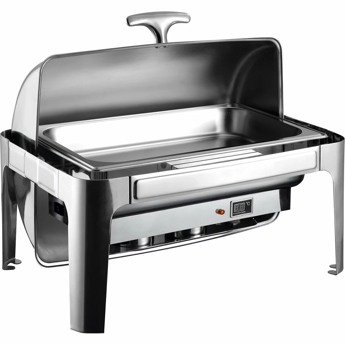 Make sure your catering food stays warmer for longer with this commercial electric chafing dish. Perfect for keeping your food at serving temperature in buffets, professional roll top chafing dishes offer portable and convenient heating. With a wet heat operation, it comes supplied with stainless steel water and food pans. Made from easy-to-clean stainless steel to save you precious time at the end of the evening.