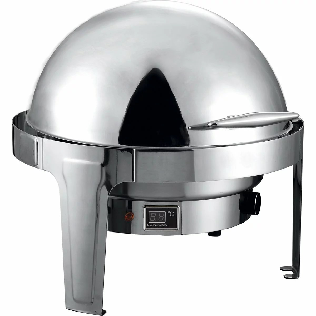Make sure your catering food stays warmer for longer with this commercial electric chafing dish. Perfect for keeping your food at serving temperature in buffets, professional roll top chafing dishes offer portable and convenient heating. With a wet heat operation, it comes supplied with stainless steel water and food pans. Made from easy-to-clean stainless steel to save you precious time at the end of the evening.
