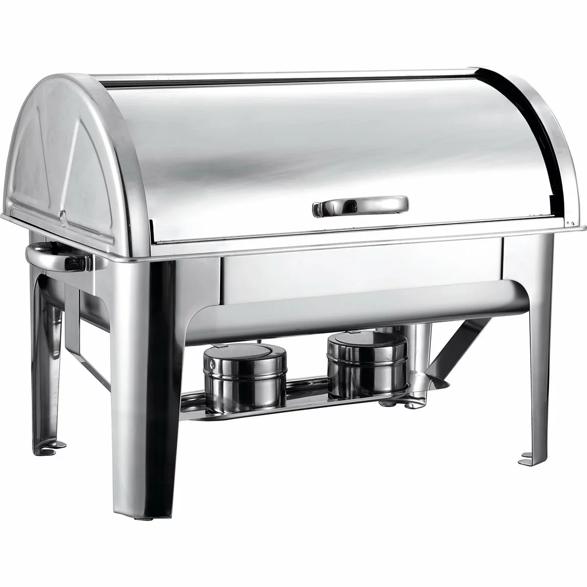 Make sure your catering food stays warmer for longer with this commercial chafing dish. Perfect for keeping your food at serving temperature in buffets, professional roll top chafing dishes offer portable and convenient heating. With a wet heat operation, it comes supplied with stainless steel water and food pans. Made from easy-to-clean stainless steel to save you precious time at the end of the evening.