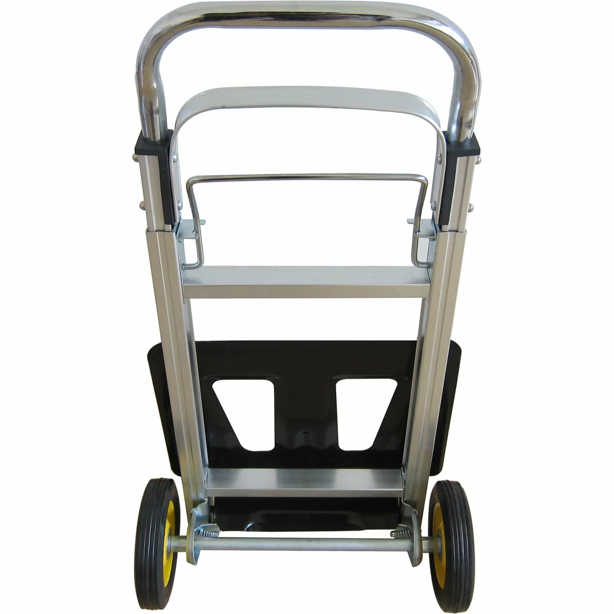 This hand truck takes the effort out of transporting heavy and bulky items such as appliances and machines from a delivery van or stockroom to the kitchen or showroom. Constructed from aluminium and featuring a highly durable design, the trolley is very light weight and easy to store once work is done. The rubber wheels make the trolley easy to manoeuvre, allowing you to transport items quickly and efficiently with minimum effort.