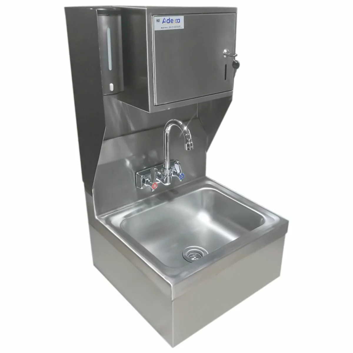 Wall Mounted Hand Sink With Faucet & Automatic Soap Dispenser & Paper Towel Dispenser Side Splash Stainless Steel | Adexa HS17FSDTDUSP