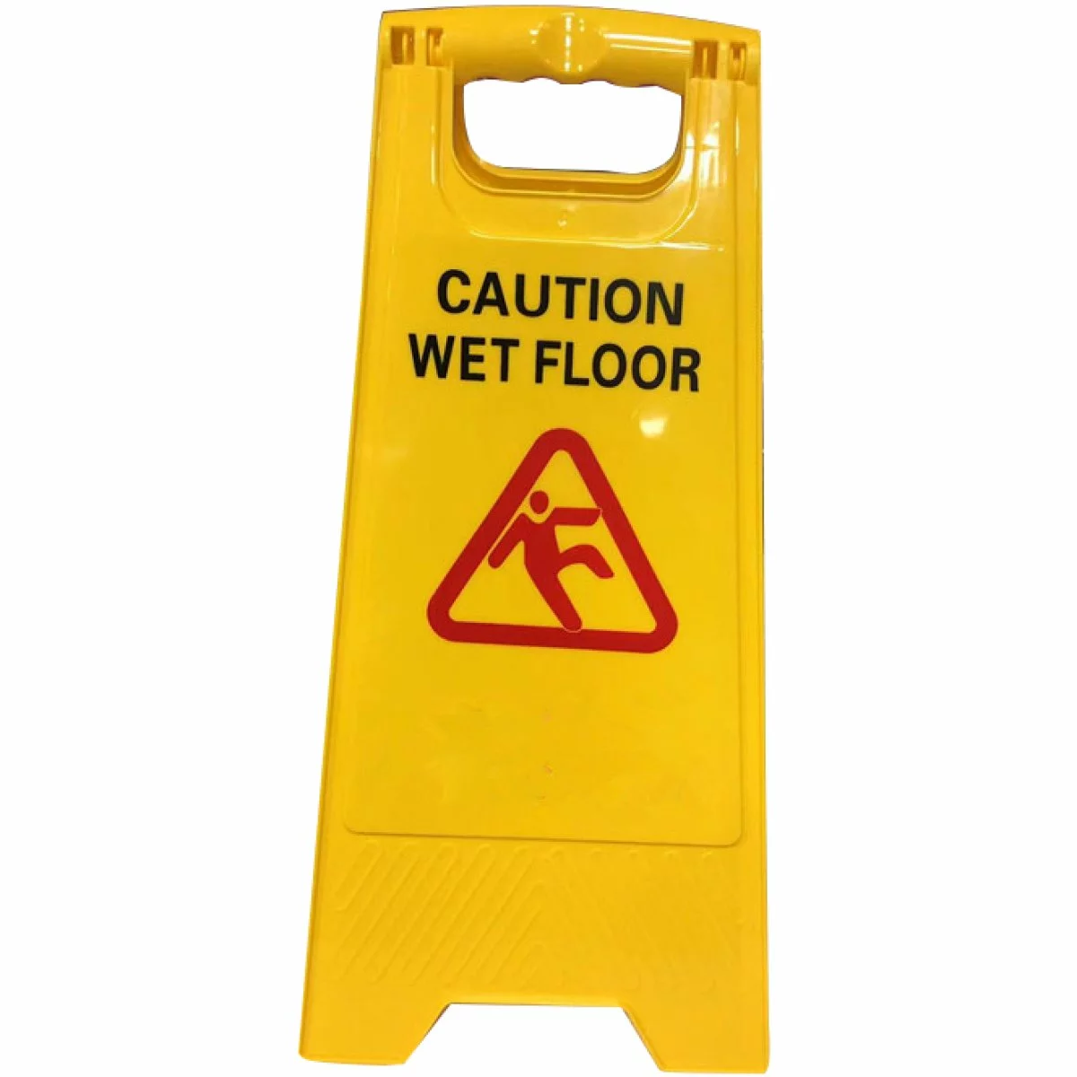 Safety is important in any commercial establishment and this bright yellow sign is key to ensuring the safety of your guests. Designed to fold into a thin panel, this wet floor sign is made of a sturdy plastic and is a must have for any business.